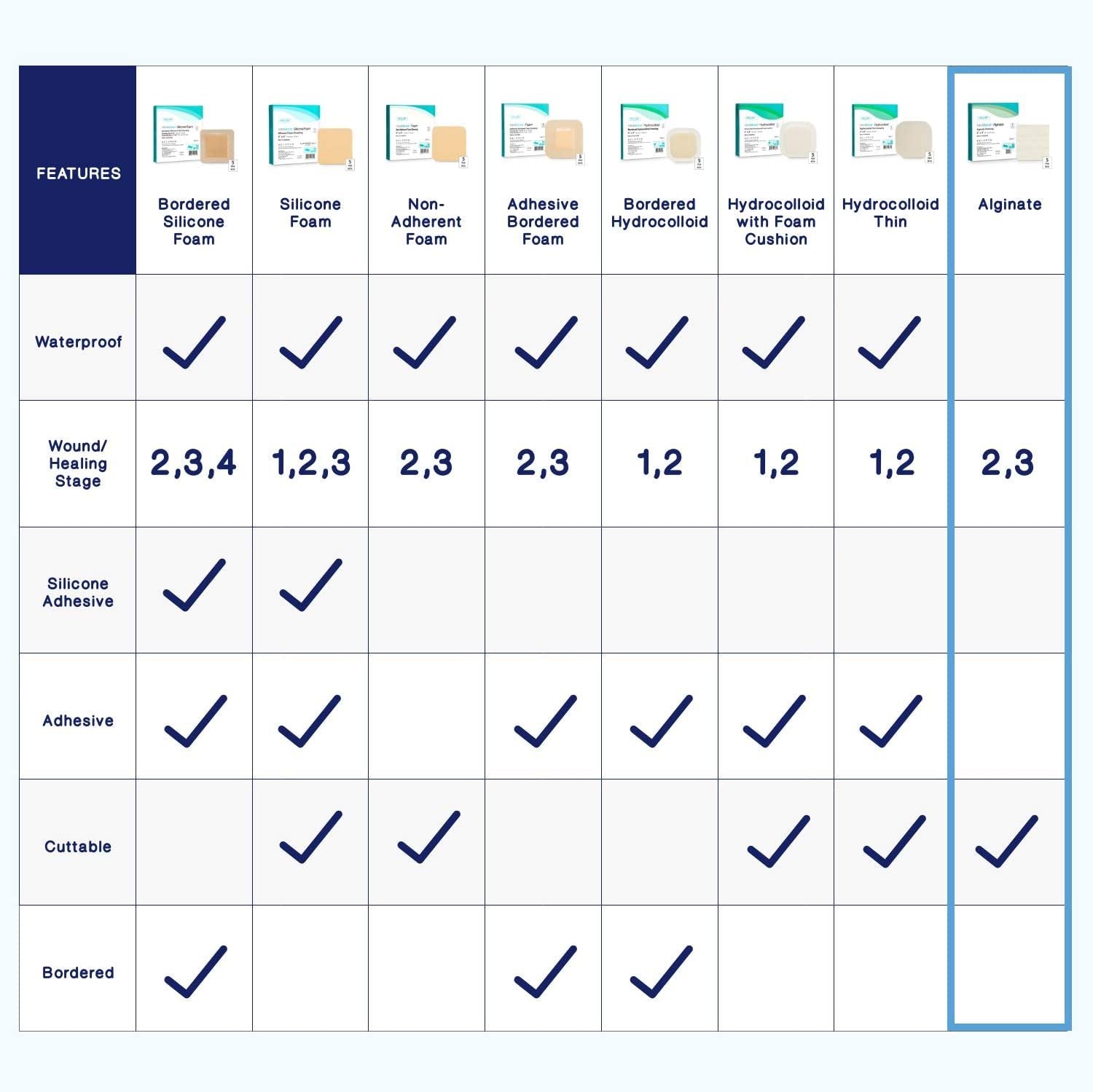 The MedVance® Alginate dressing is a highly effective solution for managing moderate to heavily exuding wounds. Made of calcium alginate derived from seaweed, it quickly absorbs and locks in wound exudate, promoting a clean and healthy healing process. The dressing comes in a flat pad format for easy application and a rope format for packing cavities. When in contact with exudate, it transforms into a gel that conforms to the wound, creating a moist environment for optimal healing. Equipped with non-woven reinforcing technology, it is easy to apply and remove without leaving residue. Versatile and reliable, the MedVance® Alginate dressing is a top-quality product for wound care.