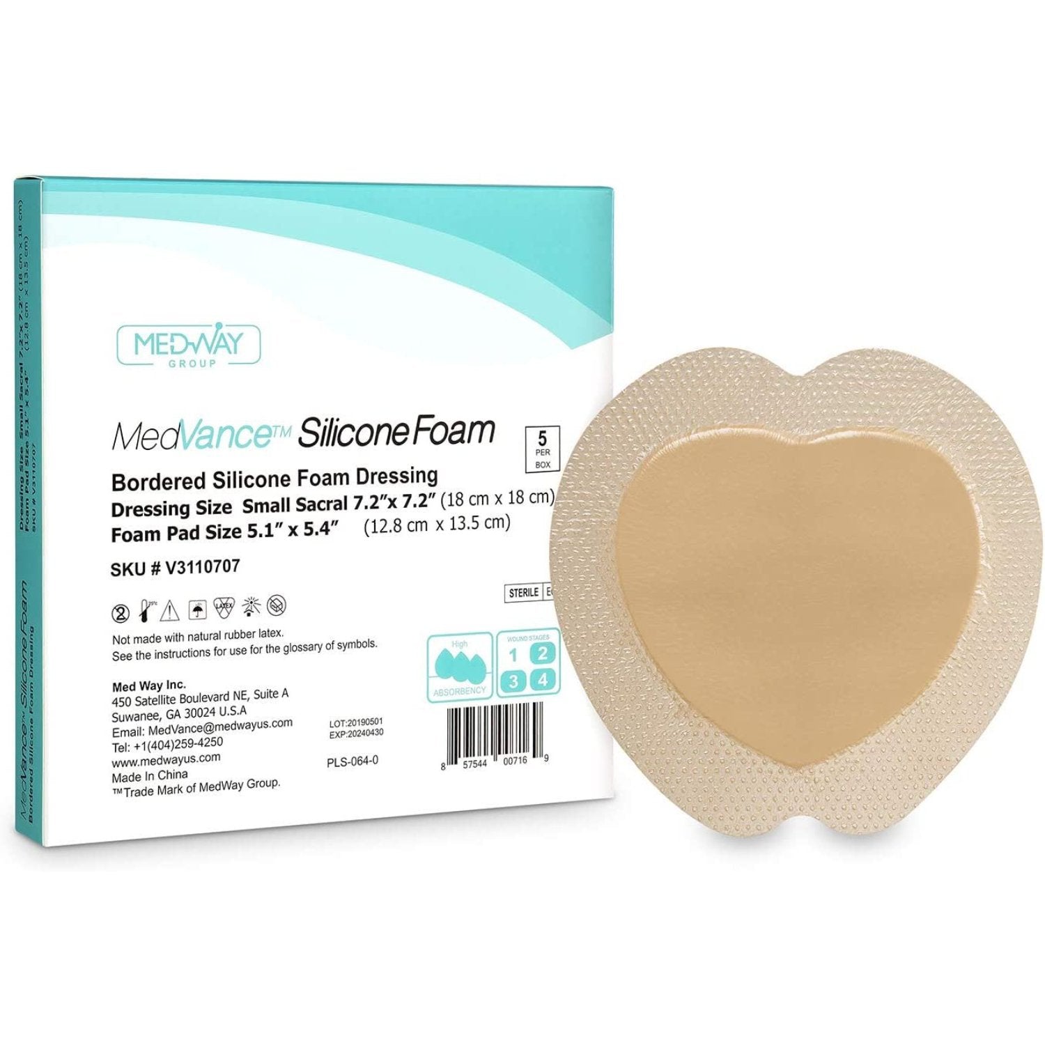 MedVance Silicone Bordered Adhesive Sacral Wound Dressing, 7"x 7", Box of 5