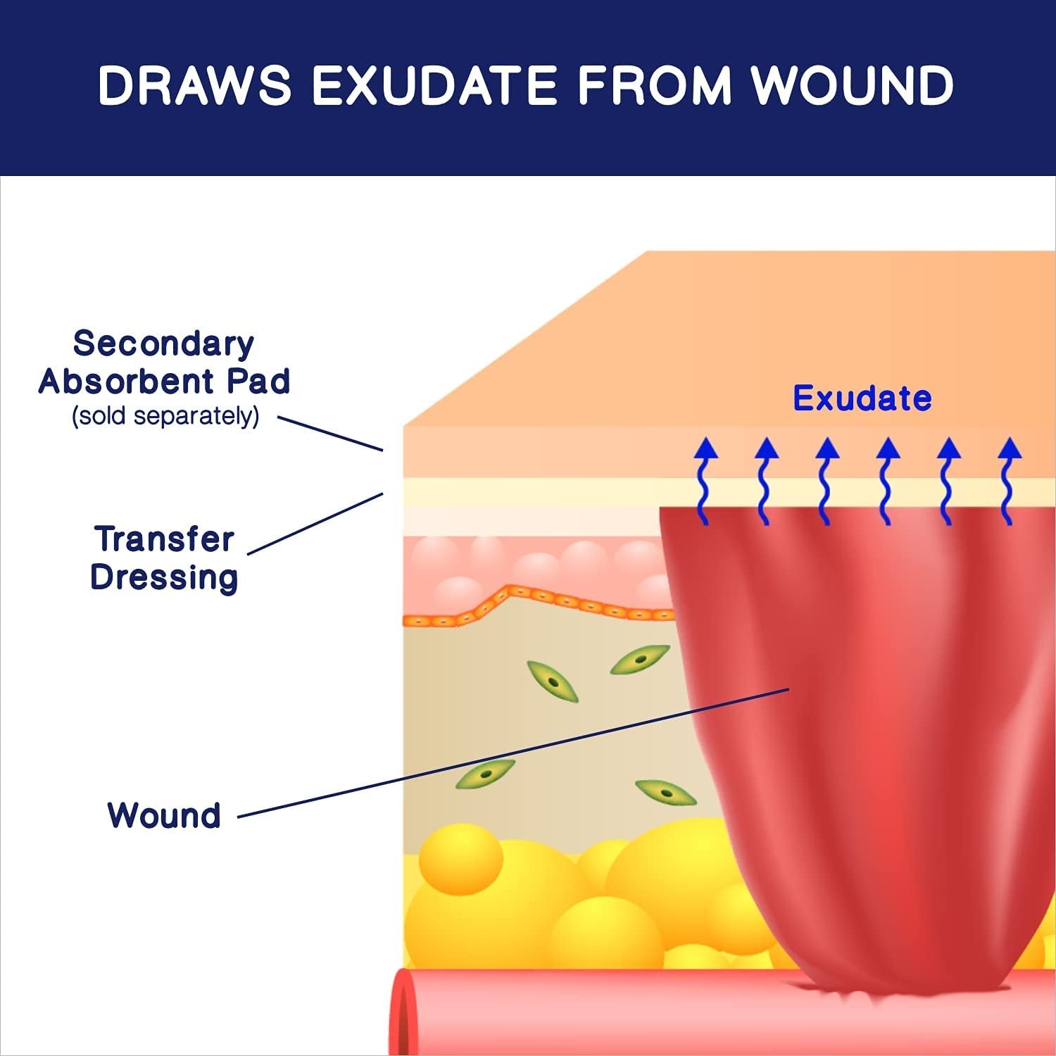 - EFFECTIVE EXUDATE MANAGEMENT: MedVance Silicone Transfer Paper draws exudate from the wound by sealing a layer around the wound which allows the foam structure of the paper to move the exudate vertically into a secondary absorbent pad, minimizing the risk of maceration.